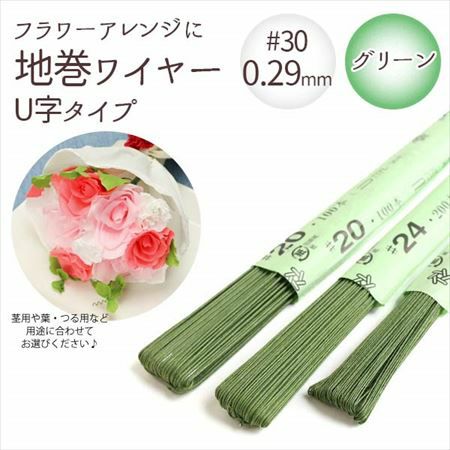 【0.29mm】 地巻ワイヤー U字タイプ グリーン #30 太さ0.29mm×全長72cm (100本入) | つくる楽しみ フラワーアレンジ | 手芸材料のネットショップ つくる楽しみ.com