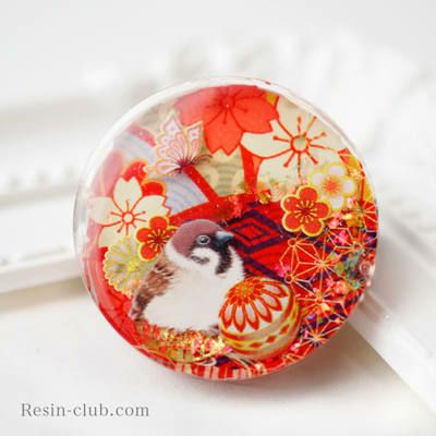レジンの中に入れたり、外側に貼ったりすることができます。外側に貼る場合は包み込むように上からレジンを縫って硬化させてください。