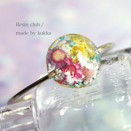 レジンの中に入れたり、外側に貼ったりすることができます。外側に貼る場合は包み込むように上からレジンを縫って硬化させてください。