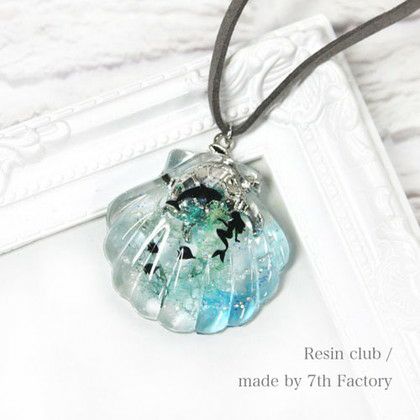 レジンの中に入れたり、外側に貼ったりすることができます。外側に貼る場合は包み込むように上からレジンを縫って硬化させてください。
