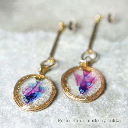 レジンの中に入れたり、外側に貼ったりすることができます。外側に貼る場合は包み込むように上からレジンを縫って硬化させてください。