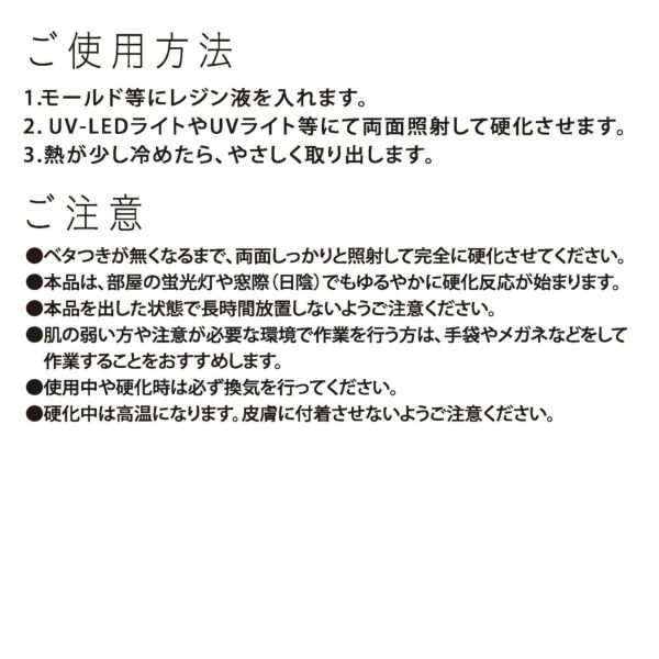 ■LEDライトでもUVライトでも硬化する、シリコーン型で透明度No.1のレジン。