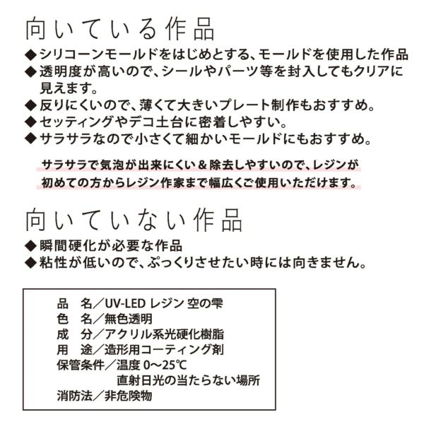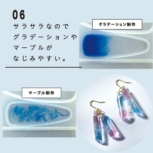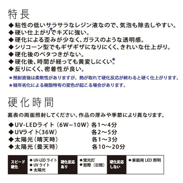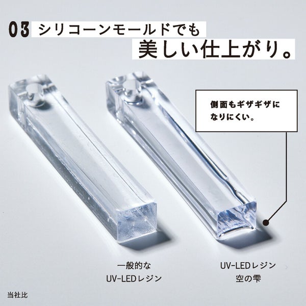 ■LEDライトでもUVライトでも硬化する、シリコーン型で透明度No.1のレジン。