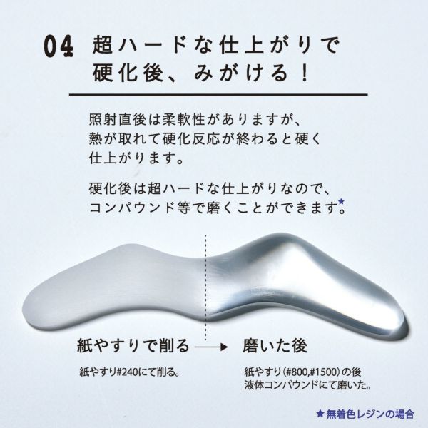 ※照射直後は柔軟性がありますが、熱が取れて硬化反応が終わると固く仕上がります