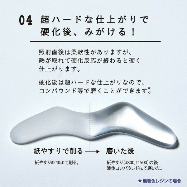 ※照射直後は柔軟性がありますが、熱が取れて硬化反応が終わると固く仕上がります