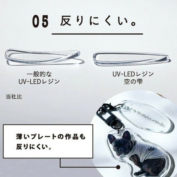 ■LEDライトでもUVライトでも硬化する、シリコーン型で透明度No.1のレジン。