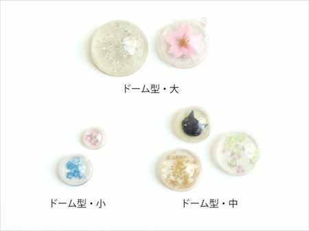 型を取り、パールやビーズ・花などお好みのパーツを入れて「ドーム専用ふた型」(品番:KAM-REJ-588)でふたをしてお楽しみいただけます♪