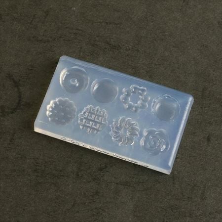 シリコーン製型抜きです。1型に8種類。ボタンとしてだけでなく、小さなデコパーツとしても使えます。