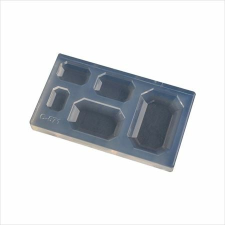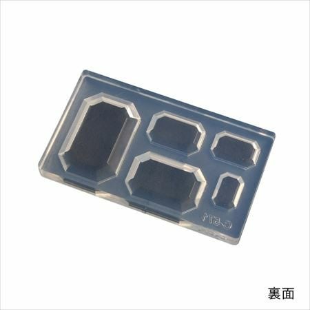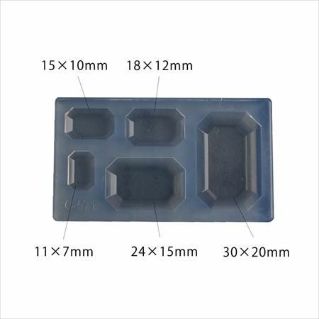 5サイズのエメラルド型が1つのモールドに。アクセサリーパーツにどうぞ。