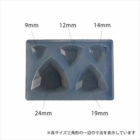 5サイズのトリリアント型が1つのモールドに。アクセサリーパーツにどうぞ。