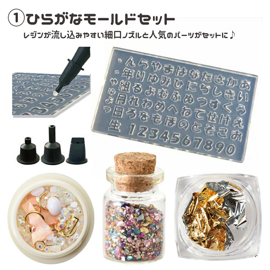 デコパーツとモールドにレジンが注ぎやすくなるノズルアタッチメントがついたお得なセット♪