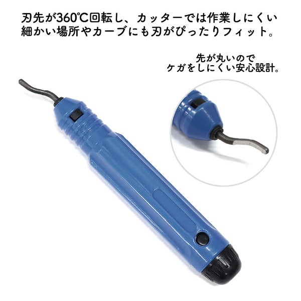 刃先が360℃回転し、カッターでは作業しにくい細かい場所やカーブにも刃がぴったりフィット。