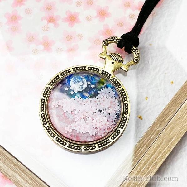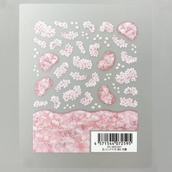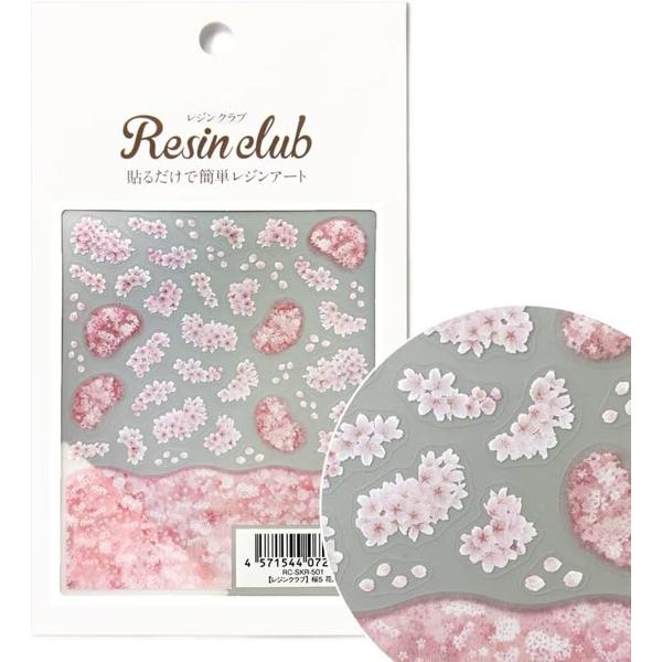 レジンの中に満開の桜が咲くように小さな桜の花を集めて一枚のシートに。桜が霞むような模様と花を合わせて使えば奥行き感のある風景が作れます。