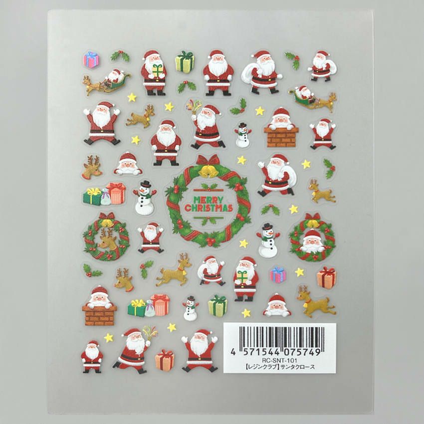 サンタクロースたちに加えて、トナカイ・雪だるま・プレゼント・柊といった