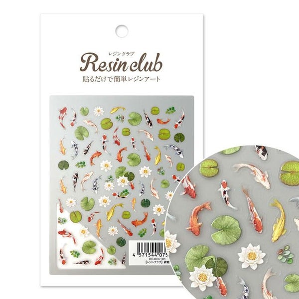 シールにしました。赤や白や黒、朱色や黄色など様々な色の錦鯉に