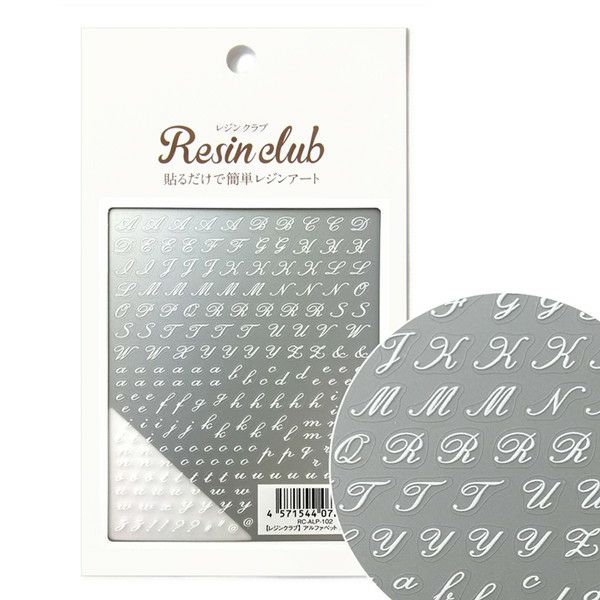 UVレジン用シールパーツ レジンクラブ アルファベット 筆記体 文字 白 両面 | 手芸材料のネットショップ つくる楽しみ.com