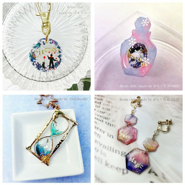 ・レジンの中に入れたり、外側にはったりすることが出来ます。外側にはる場合はコーティングをしてください。