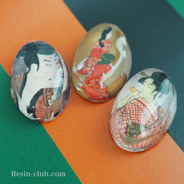 レジンの中に入れたり、外側にはったりすることが出来ます。外側にはる場合はコーティングをしてください。