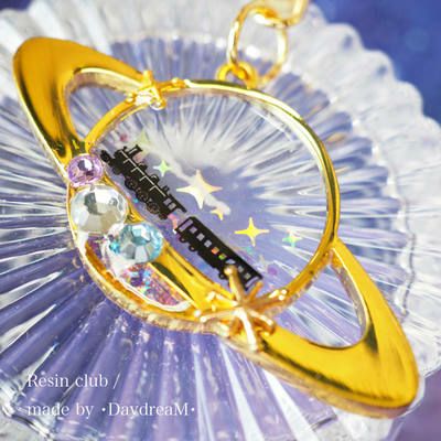 レジンの中に入れたり、外側に貼ったりすることができます。外側に貼る場合は包み込むように上からレジンを縫って硬化させてください。