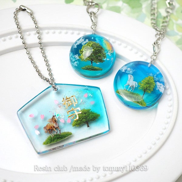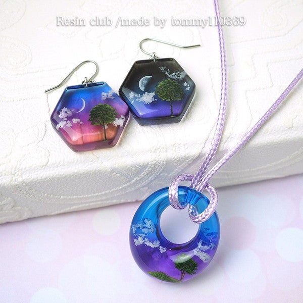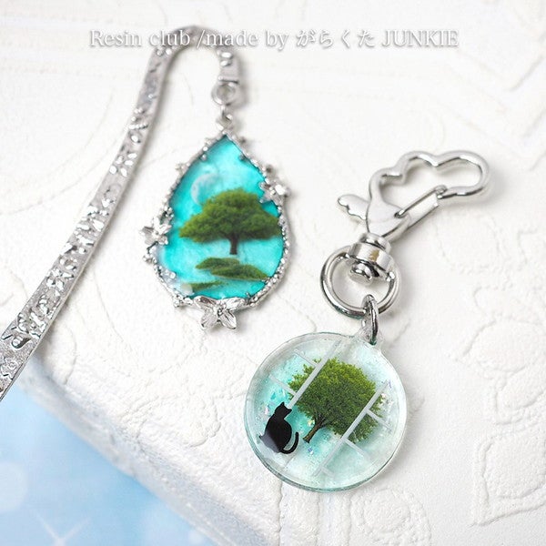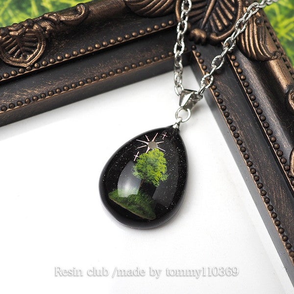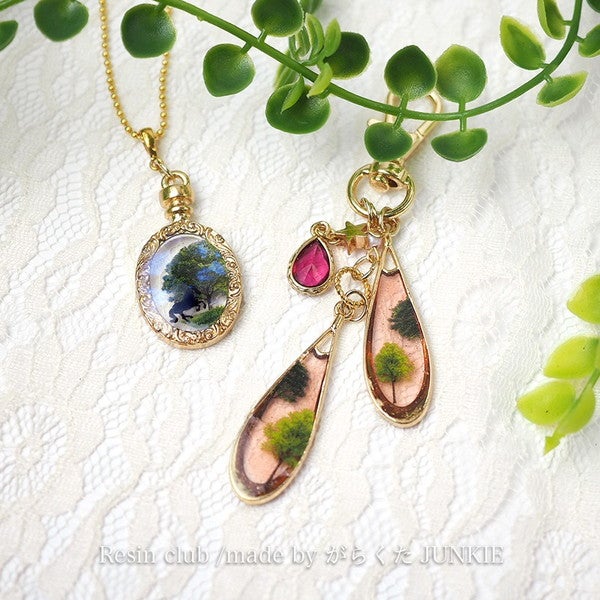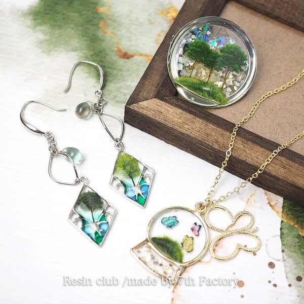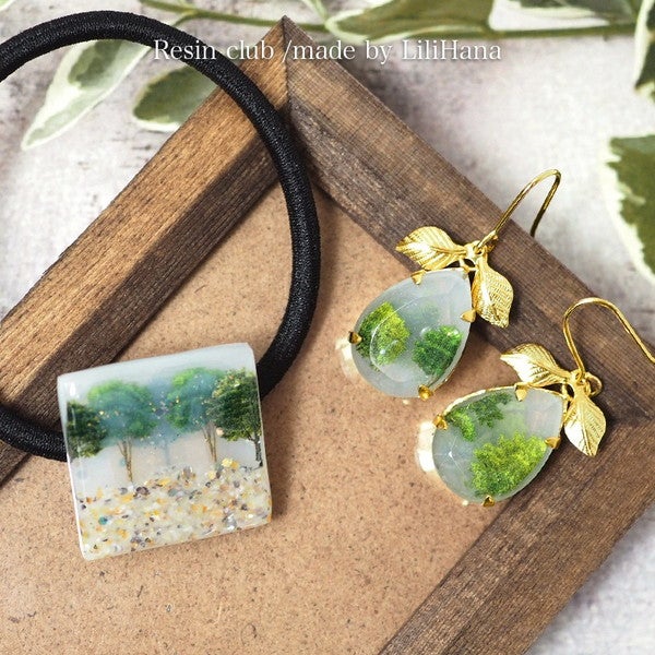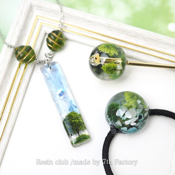 レジンの中に、小さな緑を閉じ込めて。繊細な樹木モチーフが重なり合い、