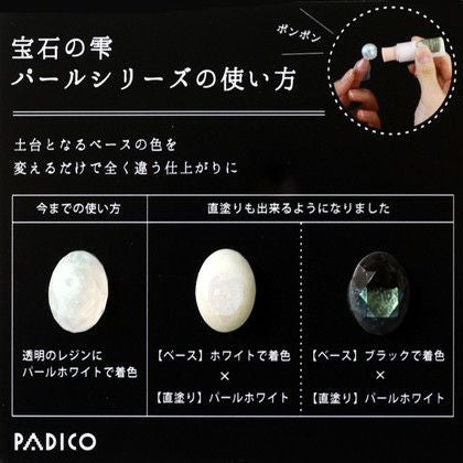 入れる量によって色の濃さを変えたり、着色剤同士で混ぜることもできるので好きな色を作ることもできます。宝石の雫パールシリーズは、レジンと混ぜるのはもちろん、専用アタッチメントを付ければ上から直接ポンポンと塗れるようになりました。本物のパールのような美しさをご堪能ください。