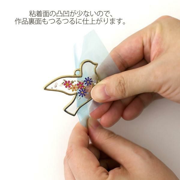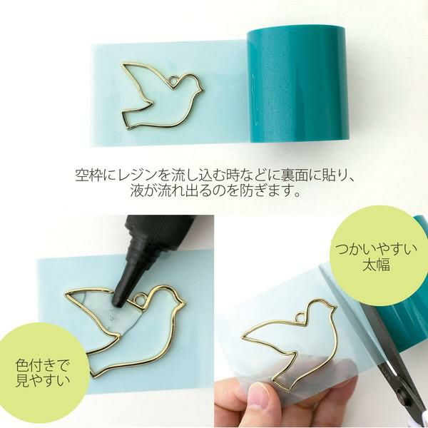 空枠にレジンを流し込む時などに裏面に貼り、液が流れ出るのを防ぎます。