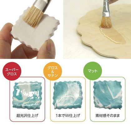 汚れやキズから作品を守る、水性タイプのニスシリーズ。超光沢からつや消しまで、作品に合わせて仕上がりを選べます。