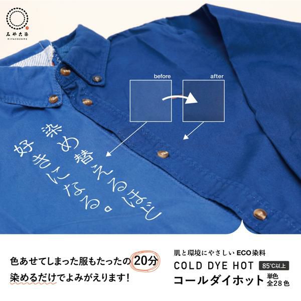 お湯(85°C以上)で濃く染まる ECO 染料です。