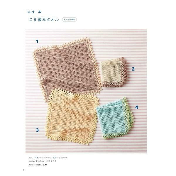 王道の透かし編みやアラン模様、編み込み模様やフルーツや動物の形のタオルなど67点をご紹介。