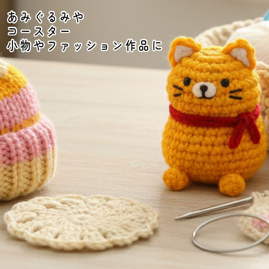 他の画像を見る S8597-SET3 韓国発信!かぎ針編みのガールズニットこもの GIRLS CROCHET ACCESSORIES & カギ針「アミュレ」〈8/0号〉& 手編み毛糸 5玉 3点セット販売 ¥ 6,710 税込 お気に入りに登録する