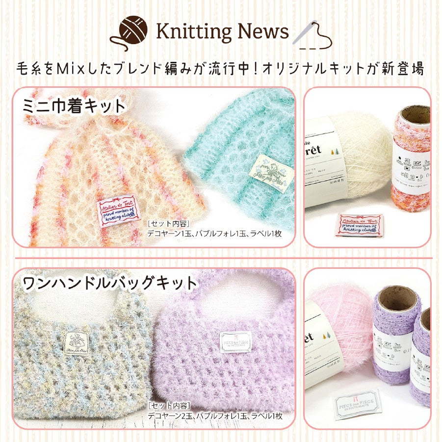 他の画像を見る 3KIT-BD1 編み物キット ミニ巾着バッグ 手編みセット バブルフォレ デコヤーン 毛糸 ミックス編み 初心者OK 韓国風 トレンドヤーン ¥ 2,200 税込 お気に入りに登録する