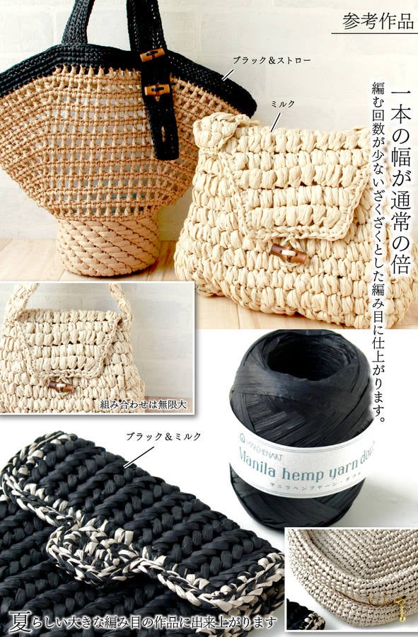 軽く柔らかいので帽子やバッグ、かご作りにも最適です。
