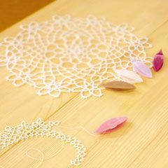 タティングレースは、基本の編み目の繰り返しで、美しい曲線を編み出していくレースです。シャトルとレース糸だけで、手軽に楽しめるのも魅力です。繊細な縁飾りの小物から、ストール、テーブルクロスの作品まで幅広く楽しめます。