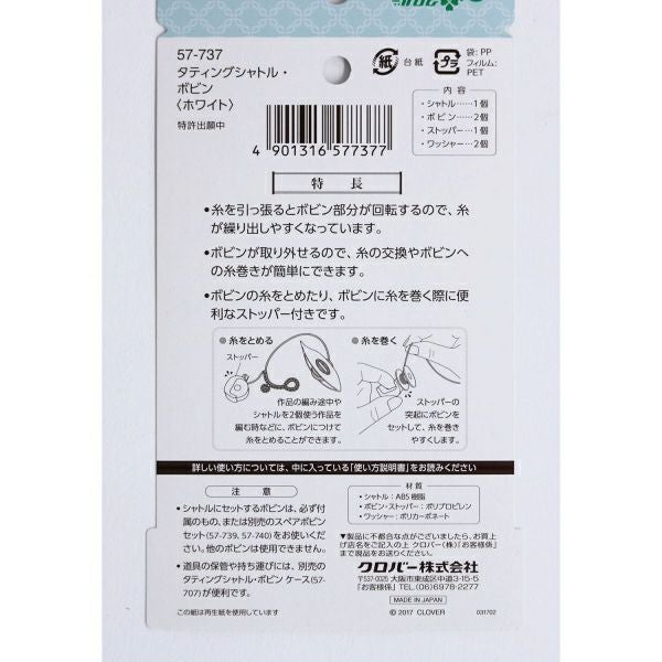 内容物:シャトル1個、ボビン2個、ストッパー 1個、ワッシャー2個