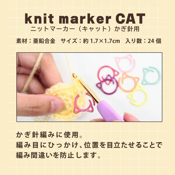 かぎ針 編み物 マーカー 印 しるしかぎ針向け・ニットマーカー キャット 1.7×1.7cm 6色・各4個入 ニットイット Knit wit