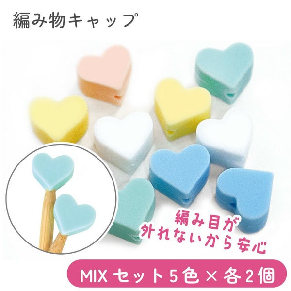 棒針キャップ 編み物キャップ 便利用品 グッズ 編み物 手芸 かわいいハート棒針キャップ パステルMIXセット 5色×各2個 ニットイット Knit wit バレンタイングッズ | 手芸材料のネットショップ つくる楽しみ.com
