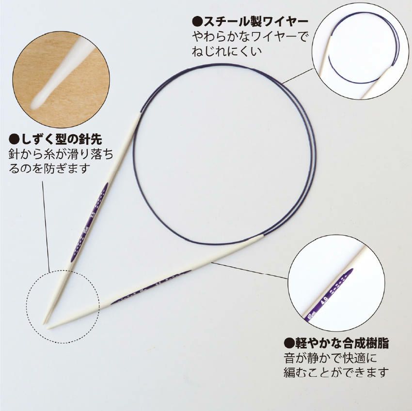 針先がしずくのような形となっておりますので、目をすくいやすく編み物がとても快適に行えます