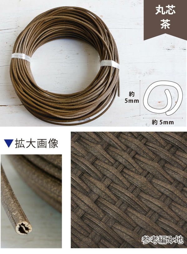 プラスチックラタン マジックラタン 丸芯 茶 約50m巻 かごバック | つくる楽しみ