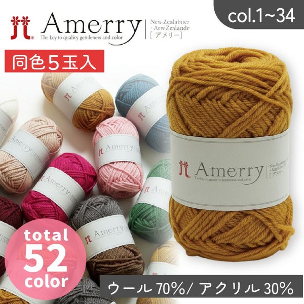 ハマナカ アメリー H2261 Amerry 並太 毛糸 ウール70% アクリル30% 40g 約110m 全色展開