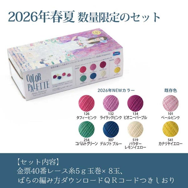 メーダ・プリマヴェージ 金票40番レース糸 2026限定 ばらの編み方QRコード付き 母の日 プレゼント カラーパレット 編み物 クリムト 絵画 限定缶 おしゃれ コレクション