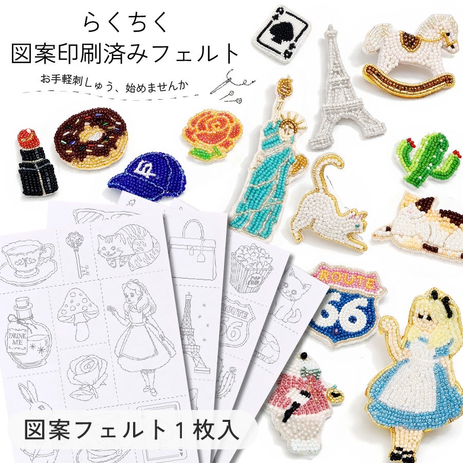 他の画像を見る LCF-MIX2 らくちくフェルト 約15×21cm 4柄セット 図案印刷済み ビーズ刺繍 フェルト刺繍 初心者 刺しゅうキット アリス 猫 パリ カフェ 下書き不要 水で消える図案 手芸 ¥ 2,675 税込 お気に入りに登録する