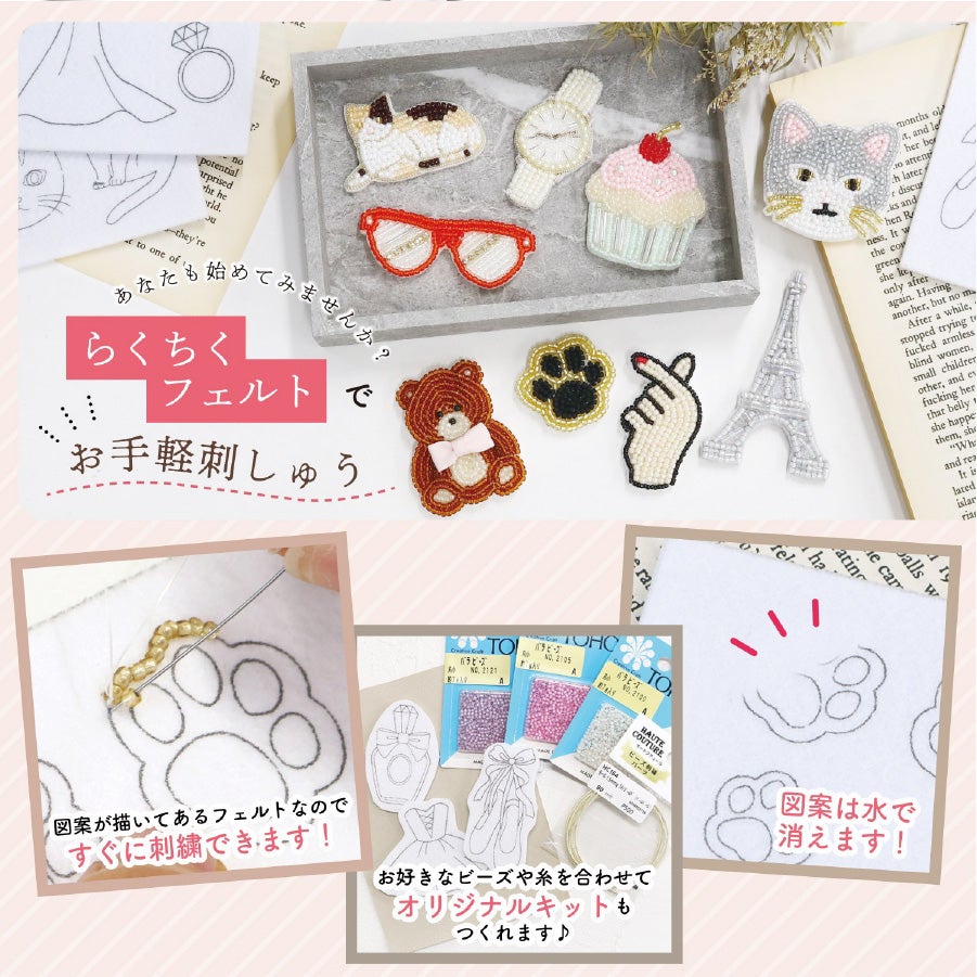 他の画像を見る TUKU-LCF-1000 図案印刷済み刺繍用フェルトのセット らくちくフェルト ビーズブローチ ブローチ ビーズ刺しゅう 刺しゅう 猫 バレエ パリ ネコ スイーツ くま ¥ 750 税込 お気に入りに登録する