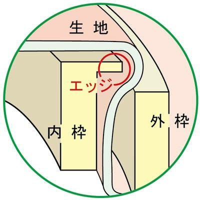 内枠についているエッジが生地をしっかりはさみ、張りを保ちます。