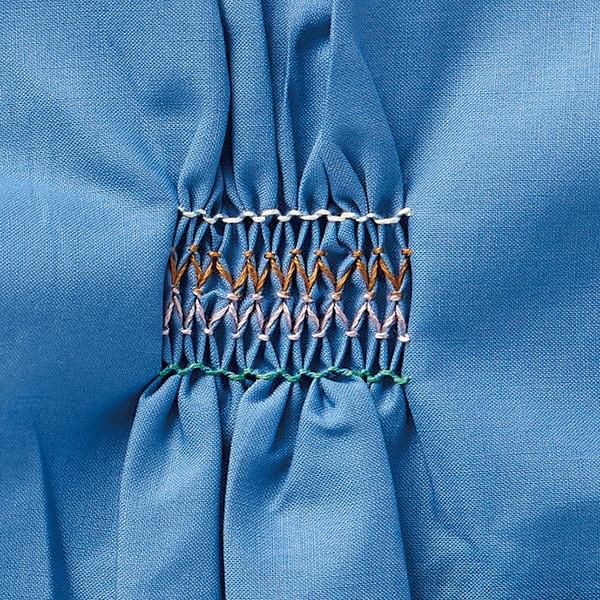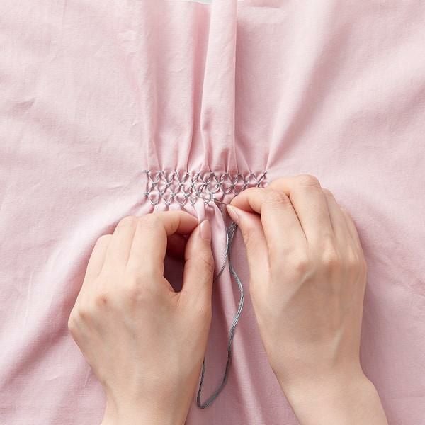印をつけた後は刺しゅう糸などを使ってスモッキングや、一目刺しの刺し子などに使えます。