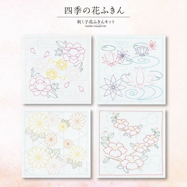 オリムパス製絲 オリムパス 刺し子 四季の花ふきんキット