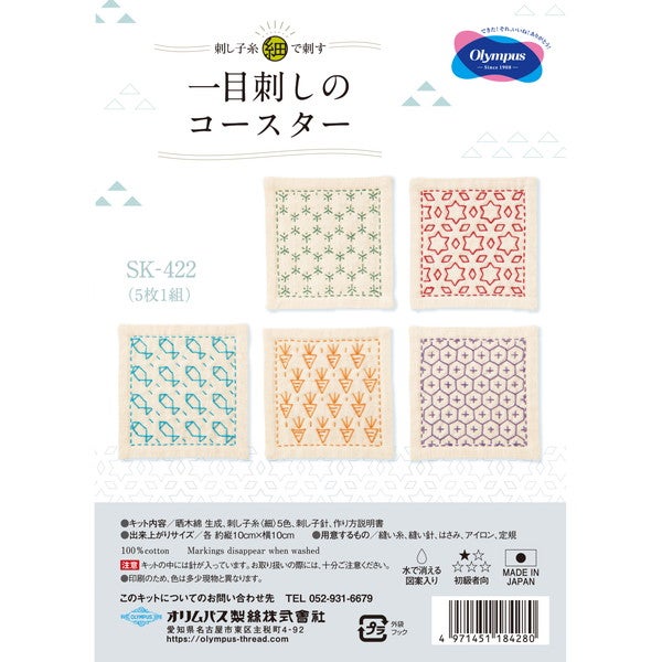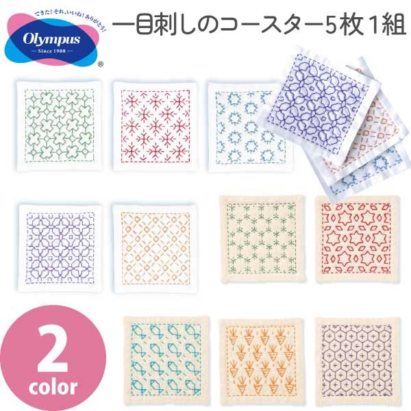オリムパス 刺し子糸 細で刺す 一目刺しのコースター 5枚1組 キット