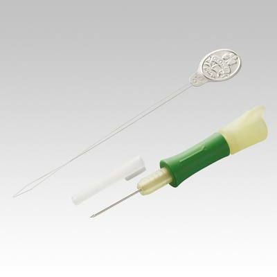 針先の交換も簡単で、安全性に配慮した柄の転がり止めが、ステッチを刺す方向の目印になります。