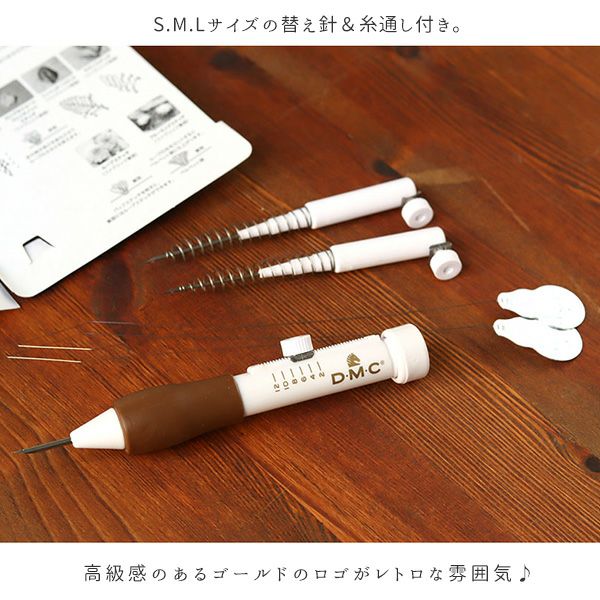 さらに3種の針サイズの替え針で幅広い素材で刺しゅうができます。