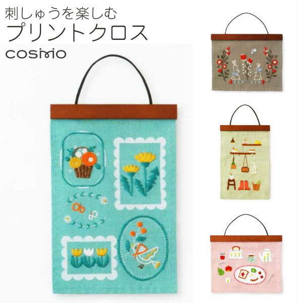 ■セット内容:刺繍布No1700フリーステッチング用コットンクロス(綿100%)・コスモ25番刺繍糸(綿100%)・刺しゅう針・木製ウォールバー・つりひも(牛革)・作り方説明書