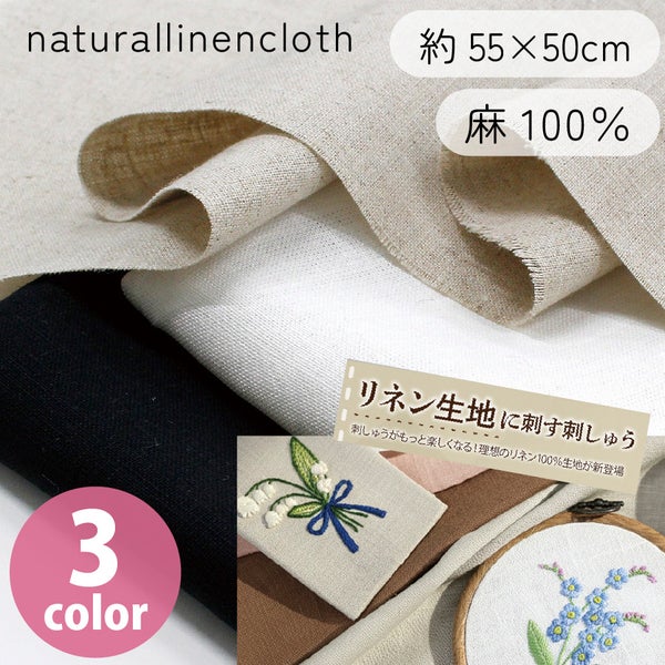 刺繍用 リネン生地 カットクロス 麻100% ナチュラルクロス 刺しゅう布 ハンドメイド 刺繍素材 約55×50cm | 手芸材料のネットショップ つくる楽しみ.com